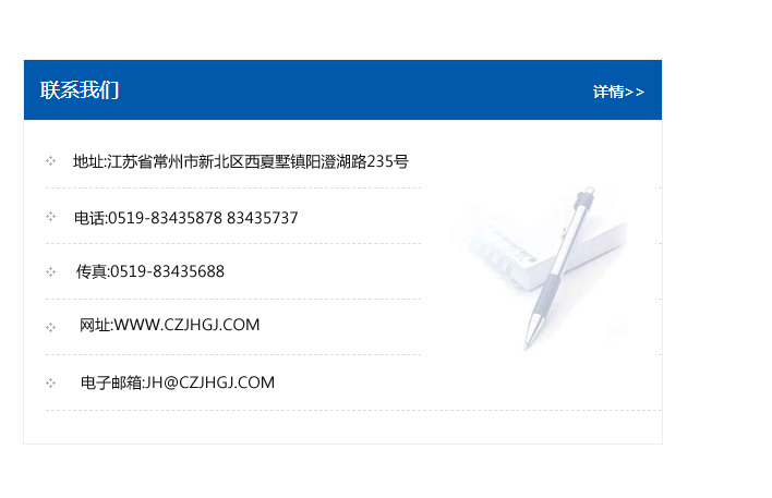 傳真:0519-83435688    郵編:213135    網址:WWW.czjhgj_com.dhd128.com    電子郵箱:JH@czjhgj_com.dhd128.com